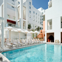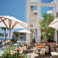 Envisioned by acclaimed designer Gulla Jónsdóttir, the Sandbourne is crafted for tranquility.The heated outdoor pool, Sunset Lounge, and daybeds create an idyllic setting for basking in the California sun, while the indoor/outdoor state-of-the-art fitness center caters to active wellness. Marelle restaurant and bar offers Californian cuisine by chef Raphael Lunetta with all-day dining.